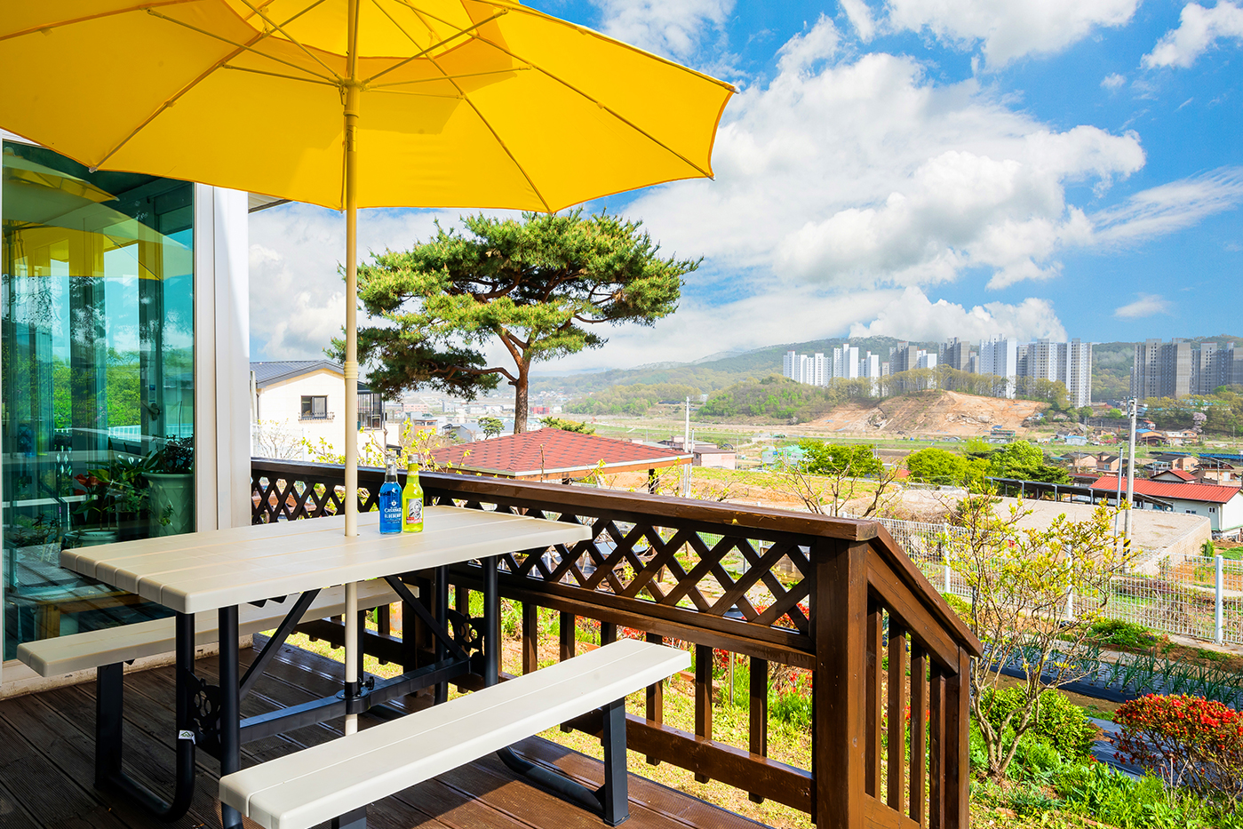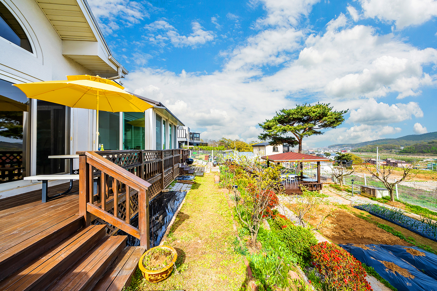 오로지 한 팀만 이용 가능하며, 따뜻한 정이 깃든 선룸과 마당에 텃밭과 시원한 전망을 즐길 수 있는 정자가 있습니다. 실내, 야외 모두 바베큐 파티 가능하며, 장작 불멍을 하실 수 있는 화롯대와 더운 여름에는 아이들을 위한 간이 풀장도 준비해드립니다. 또한 유아친화 펜션으로, 유아 식기류와 장난감 구비되어 있으니 가족, 지인들과 함께 행복한 힐링하며 지내시길 바랍니다.
